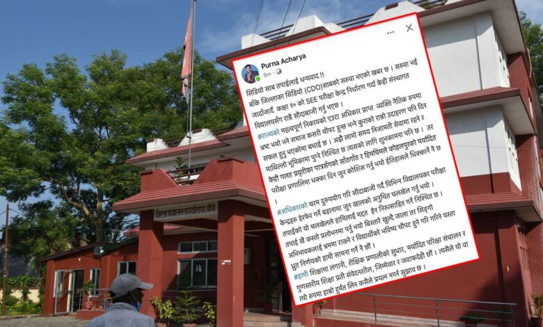 सिडिओ साब तपाईलाई धन्यवाद !! भन्दै बाँके जिल्लाका सिडिओले सरुवा भई जादाँजादैँ कक्षा १० को एसईई परीक्षा केन्द्र निर्धारण गर्दा केही संस्थागत विद्यालयसँग राम्रै सौदाबाजी गरेको मेयर आचार्यको आरोप छ ।